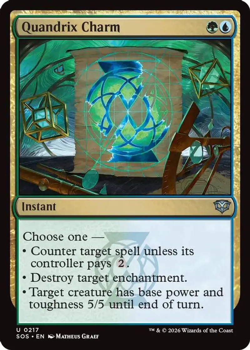 Magic: the Gathering (mtg) Uncommon instant Quandrix Charm from Secrets of Strixhaven (SOS) last updated 2026-04-16 23:11:34