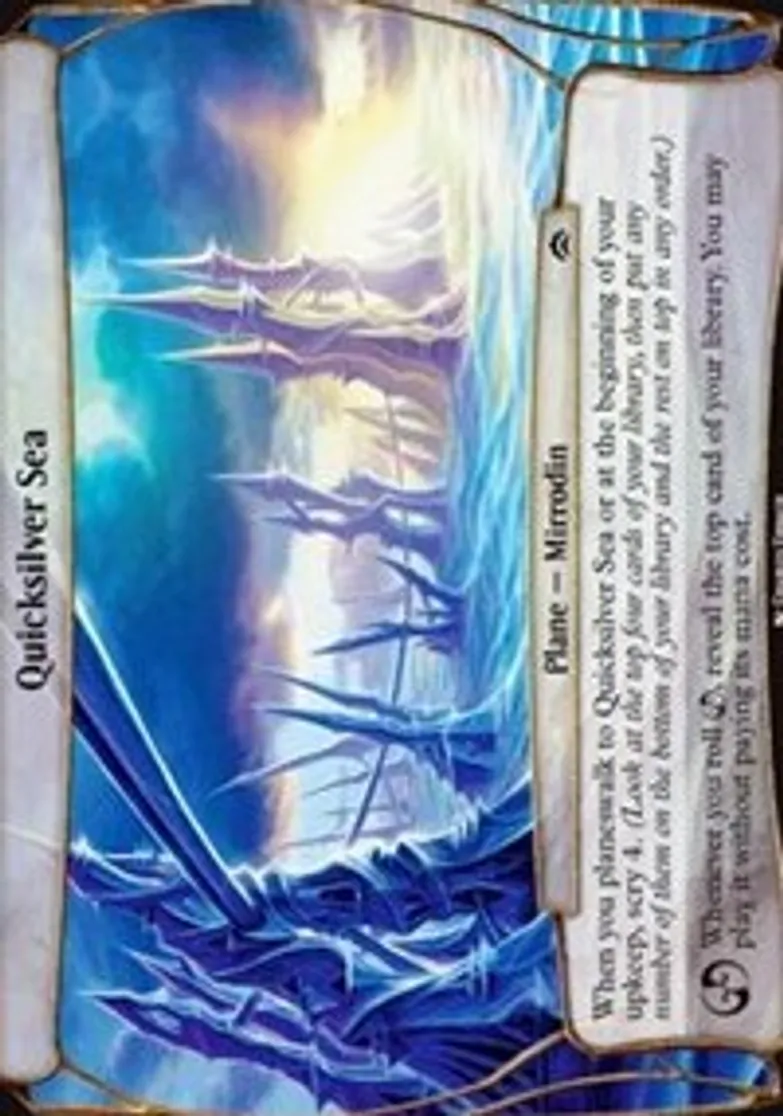 | Oracle Text | When you planeswalk to Quicksilver Sea or at the beginning of your upkeep, scry 4. (To scry 4, look at the top four cards of your library, then put any number of them on the bottom of your library and the rest on top in any order.)