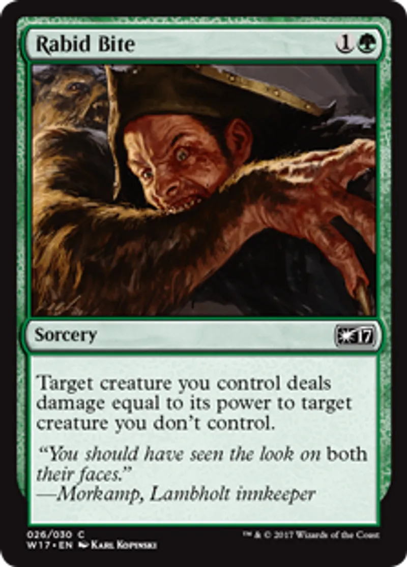 Magic: the Gathering (mtg) Common Sorcery Rabid Bite from Welcome Deck 2017 (W17) last updated 2026-02-21 16:48:04