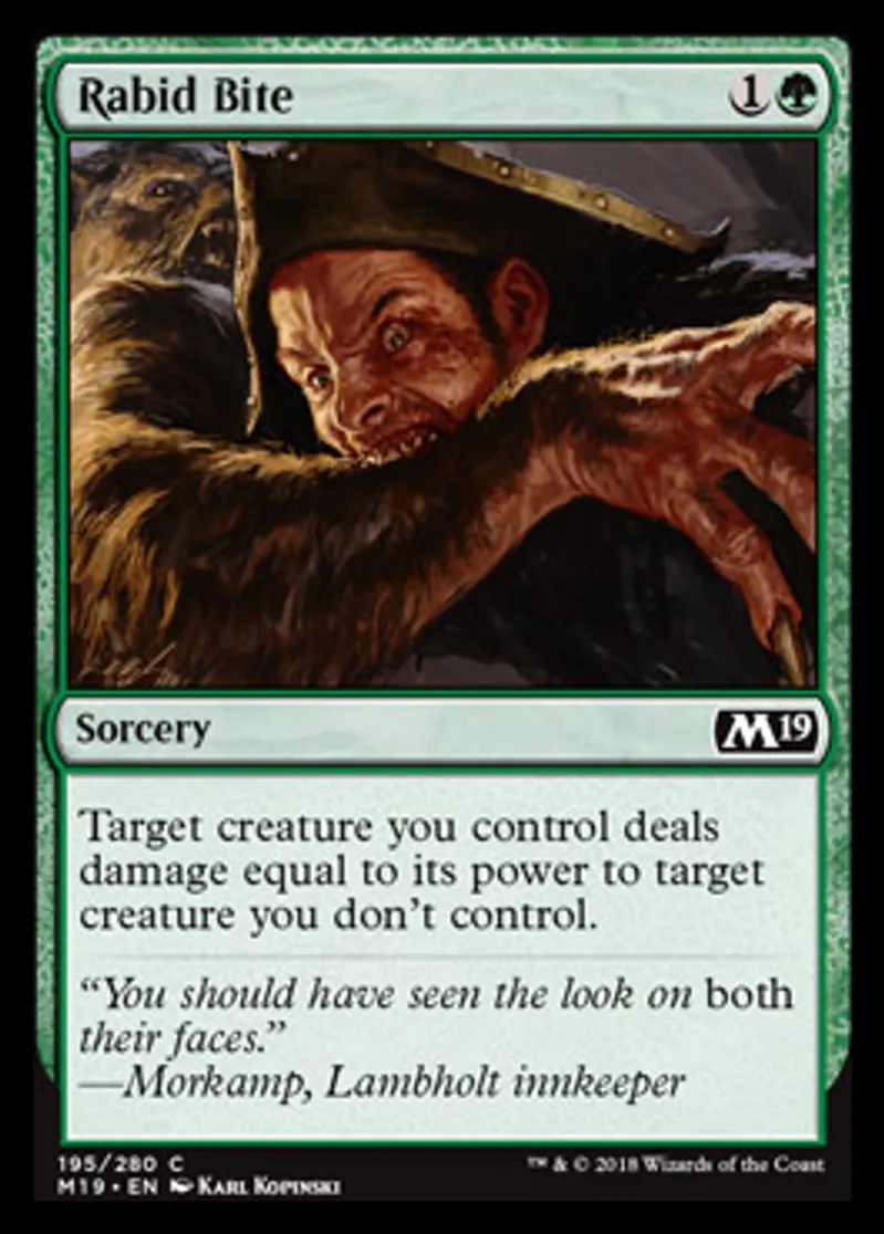 Magic: the Gathering (mtg) Common Sorcery Rabid Bite from Core Set 2019 (M19) last updated 2026-02-21 16:53:32