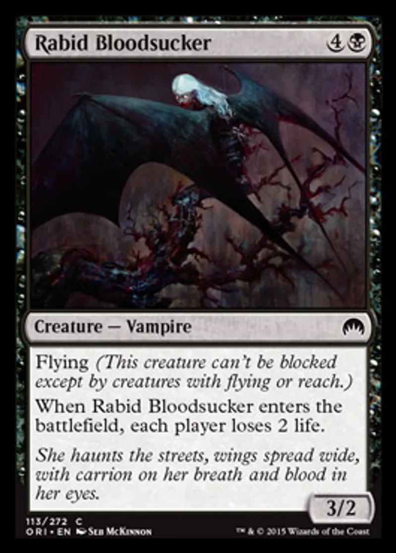 | Oracle Text | Flying (This creature can't be blocked except by creatures with flying or reach.) When Rabid Bloodsucker enters the battlefield, each player loses 2 life. | ||