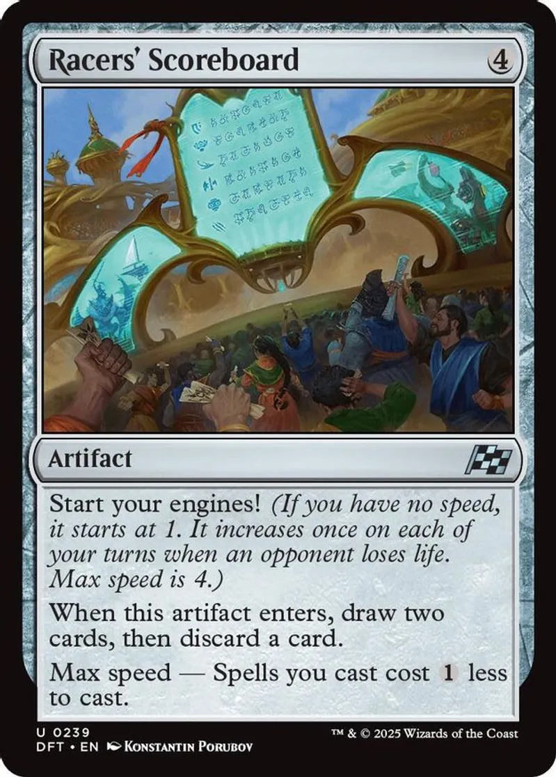 Magic: the Gathering (mtg) Uncommon artifact Racers' Scoreboard from Aetherdrift (DFT) last updated 2025-12-20 15:35:02