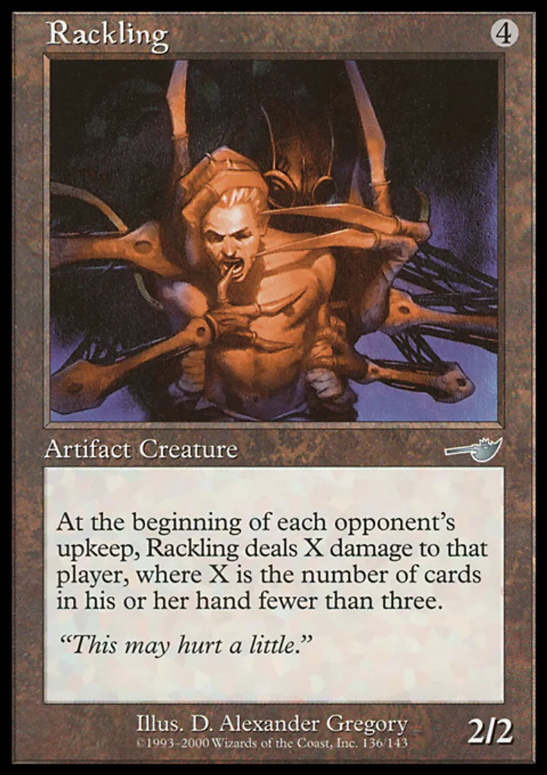 Magic: the Gathering (mtg) Uncommon Artifact Creature - Construct Rackling from Nemesis (NMS) last updated 2026-02-25 14:45:33