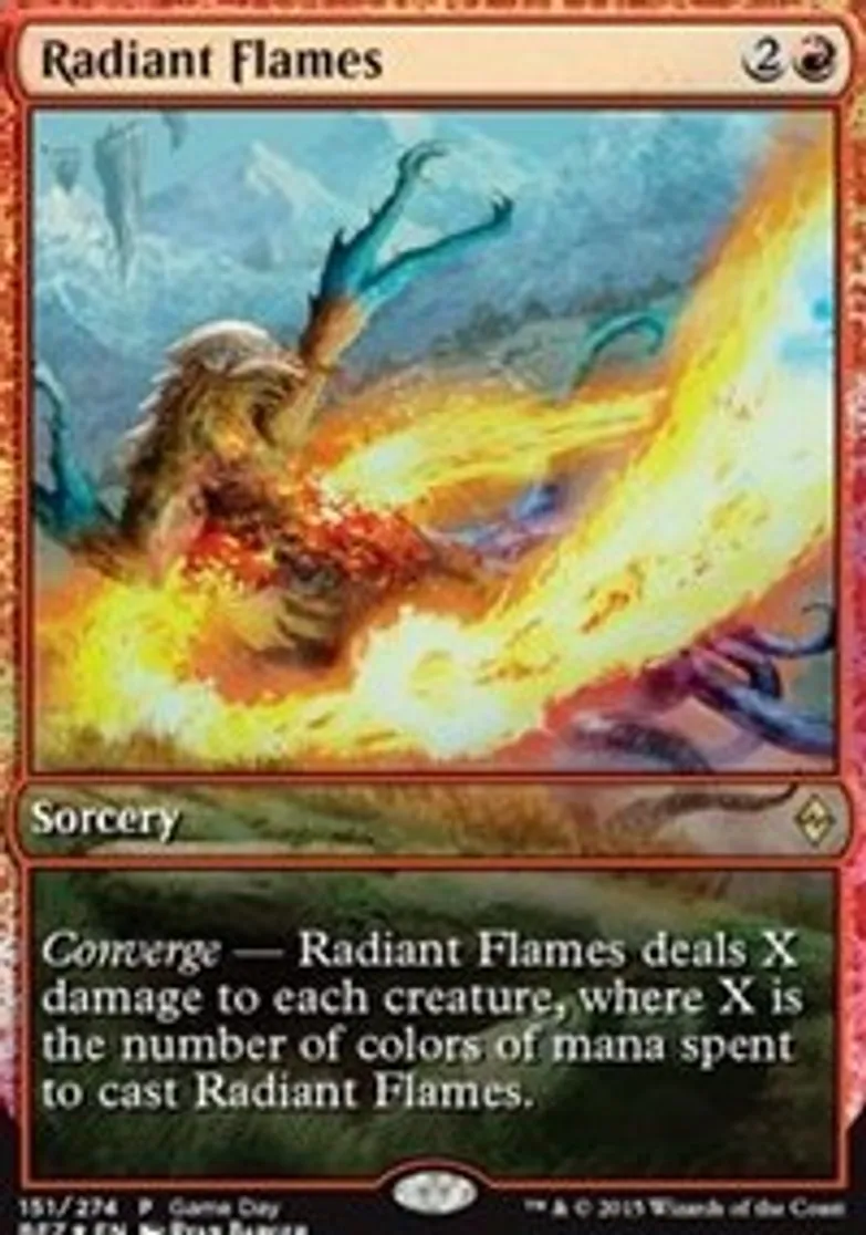 | Oracle Text | Converge — Radiant Flames deals X damage to each creature, where X is the number of colors of mana spent to cast Radiant Flames.