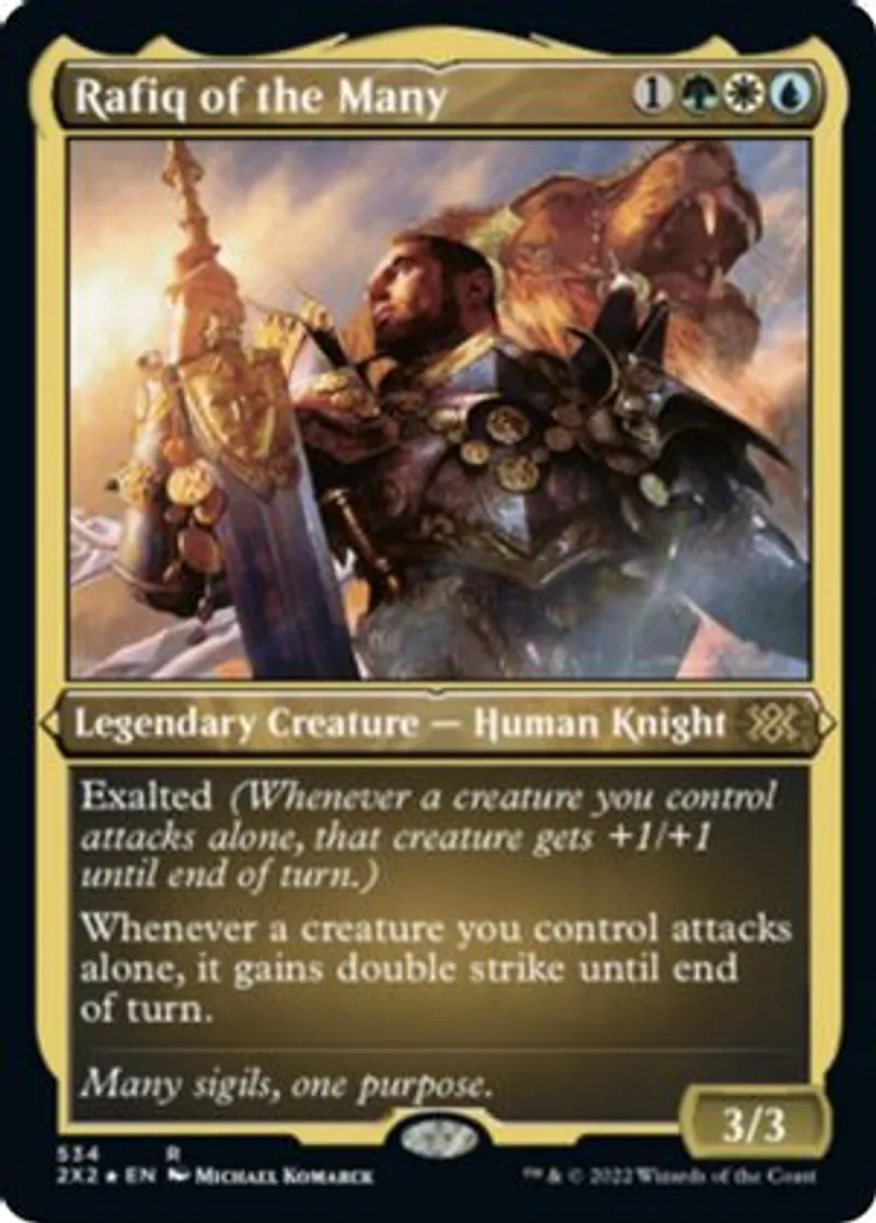 Magic: the Gathering (mtg) Rare Legendary Creature — Human Knight Rafiq of the Many from Double Masters 2022 (2X2) last updated 2026-02-21 16:09:02