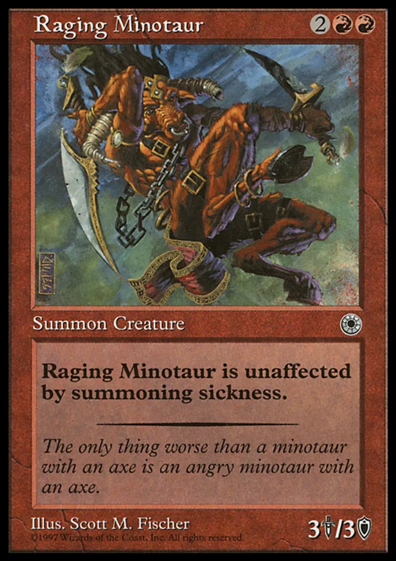 Magic: the Gathering (mtg) Common Creature - Minotaur Berserker Raging Minotaur from Portal (POR) last updated 2026-02-21 17:31:06