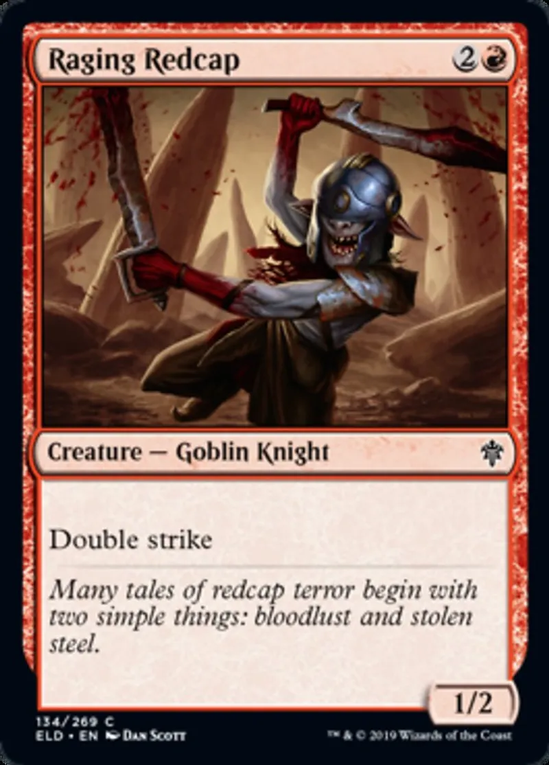 Raging Redcap is a Common in the set Throne of Eldraine.