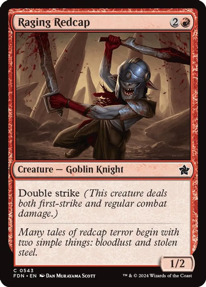 Magic: the Gathering (mtg) Common creature — goblin knight Raging Redcap from Foundations (FDN) last updated 2026-02-21 15:32:36