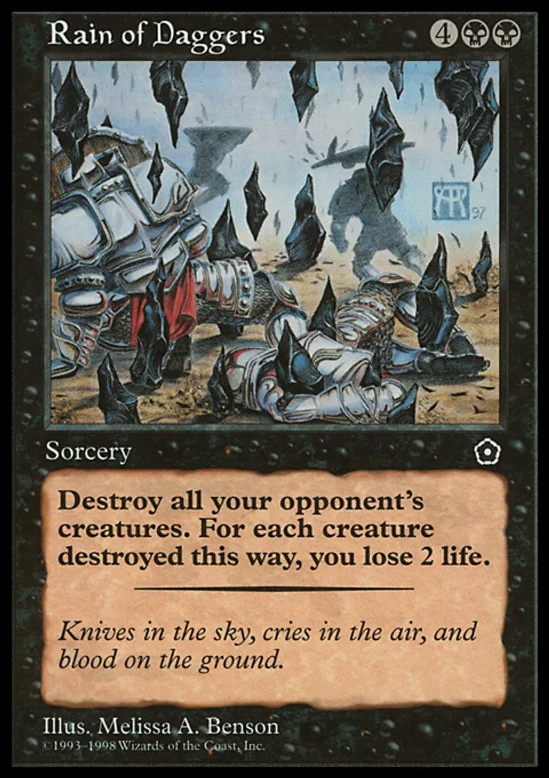 Magic: the Gathering (mtg) Rare Sorcery Rain of Daggers from Portal Second Age (P02) last updated 2026-02-25 15:07:07