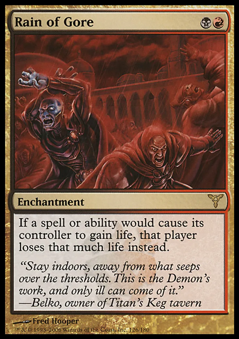 Magic: the Gathering (mtg) Rare Enchantment Rain of Gore from Dissension (DIS) last updated 2026-02-25 14:48:33
