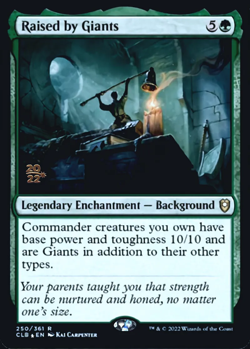 Magic: the Gathering (mtg) Rare Legendary Enchantment — Background Raised by Giants from Prerelease Cards (pPRE) last updated 2026-02-21 16:10:06