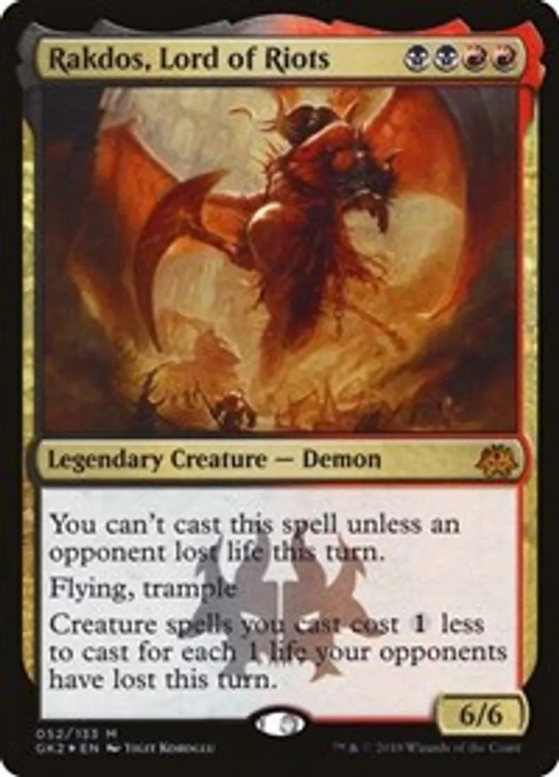 Rakdos, Lord of Riots is a Mythic Rare in the set Ravnica Allegiance: Guild Kits.