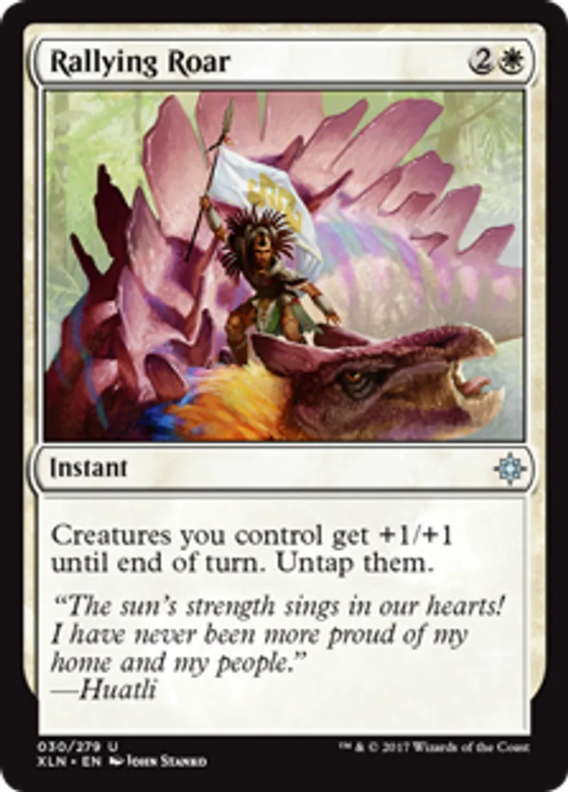 Magic: the Gathering (mtg) Uncommon Instant Rallying Roar from Ixalan (XLN) last updated 2026-02-21 16:48:04