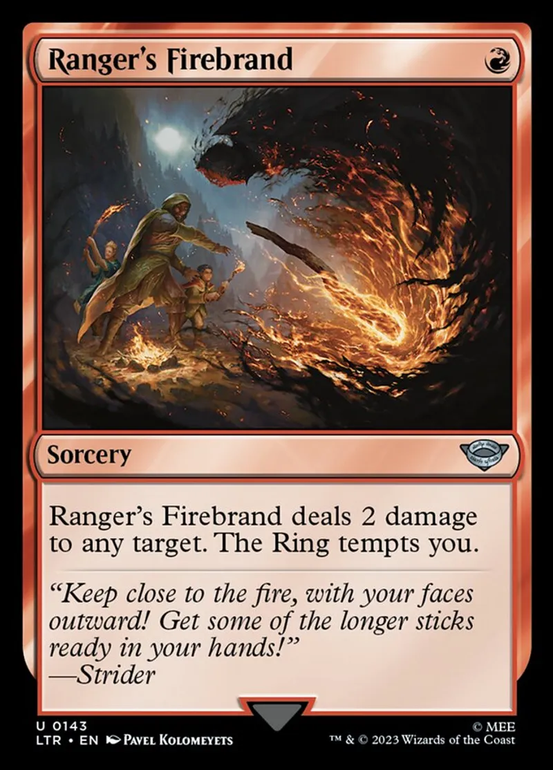 | Oracle Text | Ranger's Firebrand deals 2 damage to any target. The Ring tempts you. | ||