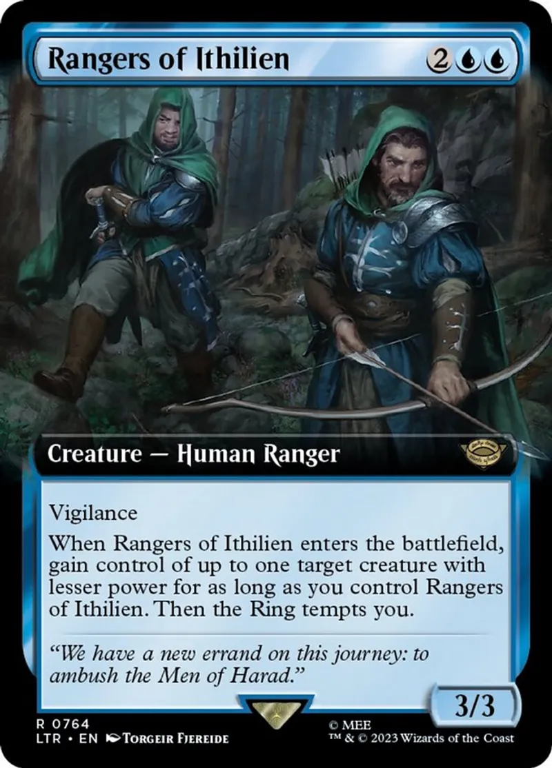 When Rangers of Ithilien enters the battlefield, gain control of up to one target creature with lesser power for as long as you control Rangers of Ithilien. Then the Ring tempts you. | ||