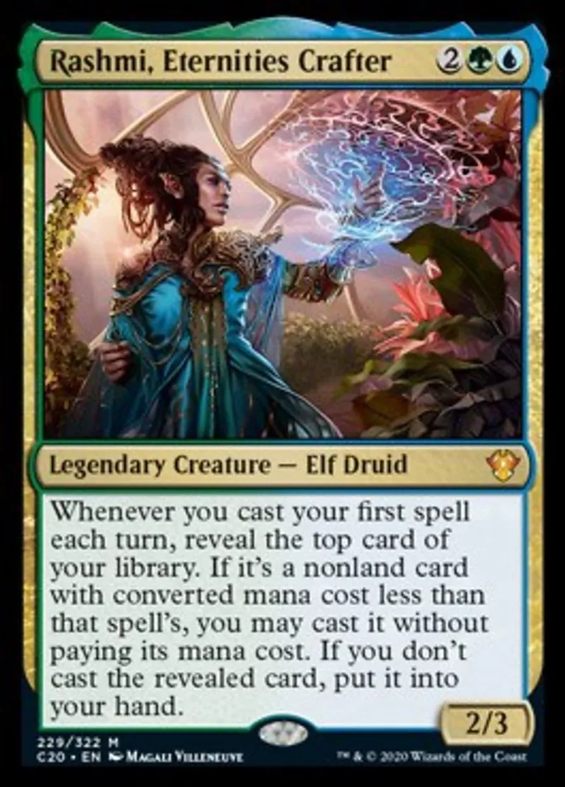 Magic: the Gathering (mtg) Mythic Rare Legendary Creature — Elf Druid Rashmi, Eternities Crafter from Commander 2020 (C20) last updated 2026-03-31 15:37:35