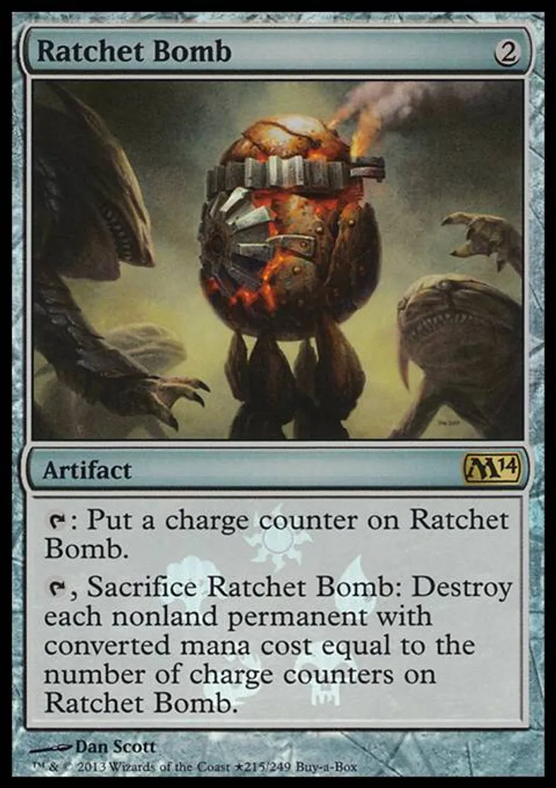 {T}, Sacrifice Ratchet Bomb: Destroy each nonland permanent with converted mana cost equal to the number of charge counters on Ratchet Bomb. | ||