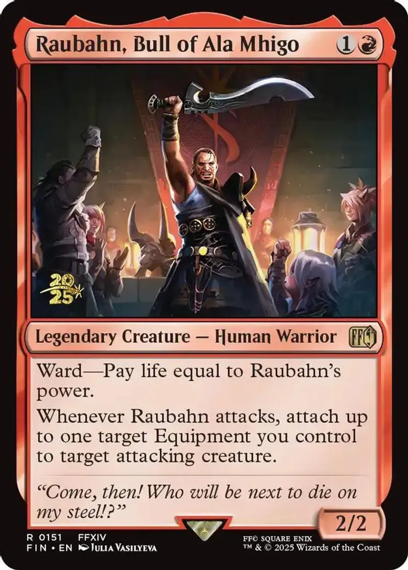 Magic: the Gathering (mtg) Rare legendary creature — human warrior Raubahn, Bull of Ala Mhigo from Prerelease Cards (pPRE) last updated 2025-12-04 15:18:31