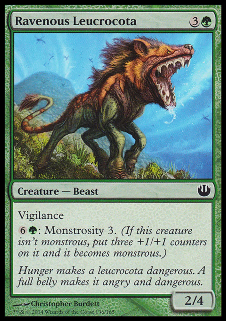 Ravenous Leucrocota is a Common in the set Journey into Nyx.