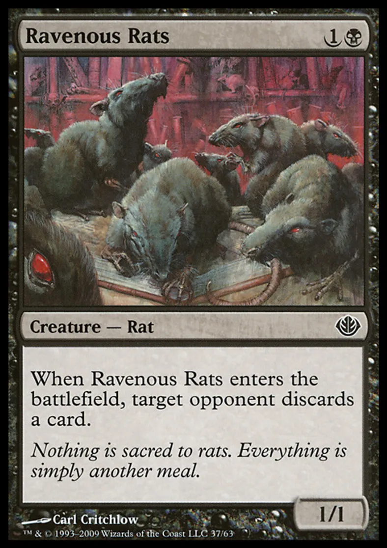 | Oracle Text | When Ravenous Rats enters the battlefield, target opponent discards a card. | ||
