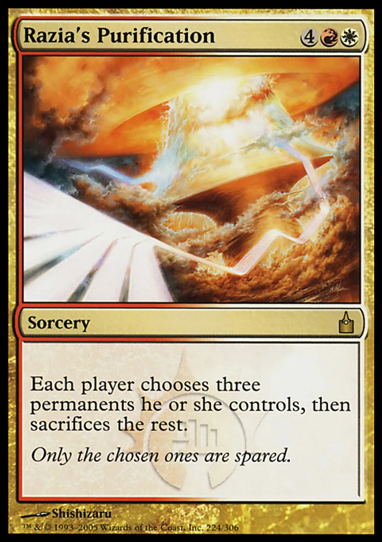 Magic: the Gathering (mtg) Rare Sorcery Razia's Purification from Ravnica: City of Guilds (RAV) last updated 2026-02-24 15:58:06