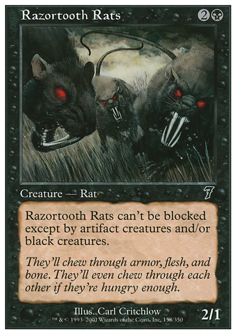 Magic: the Gathering (mtg) Common Creature - Rat Razortooth Rats from Seventh Edition (7ED) last updated 2026-02-24 15:48:32
