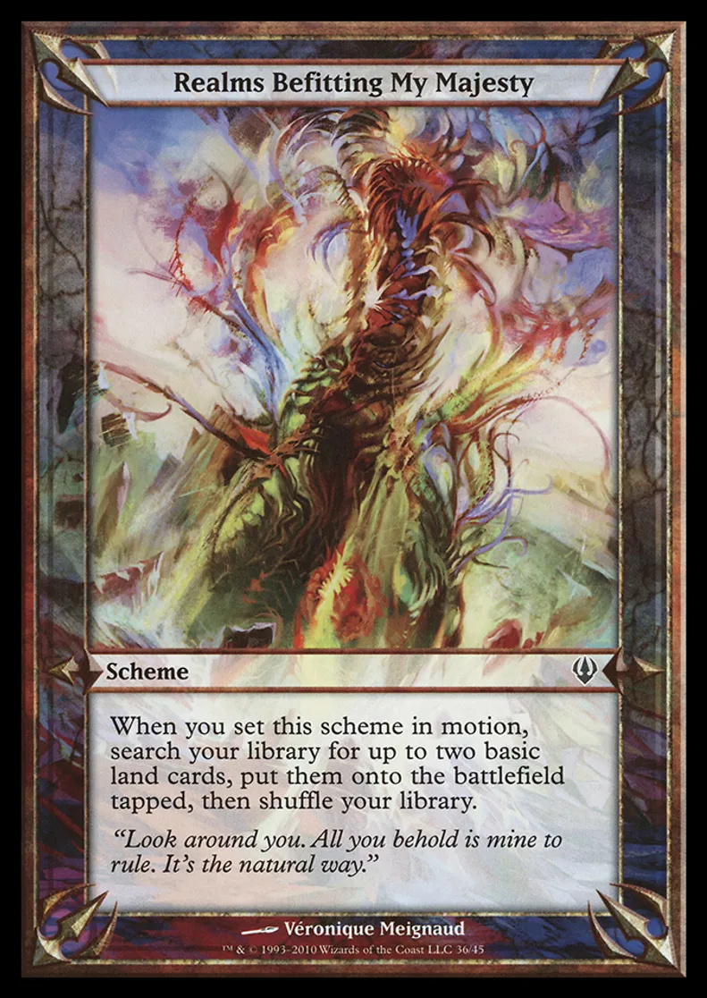Magic: the Gathering (mtg) Common Scheme Realms Befitting My Majesty from Oversize Cards (pOVR) last updated 2026-02-25 15:09:36