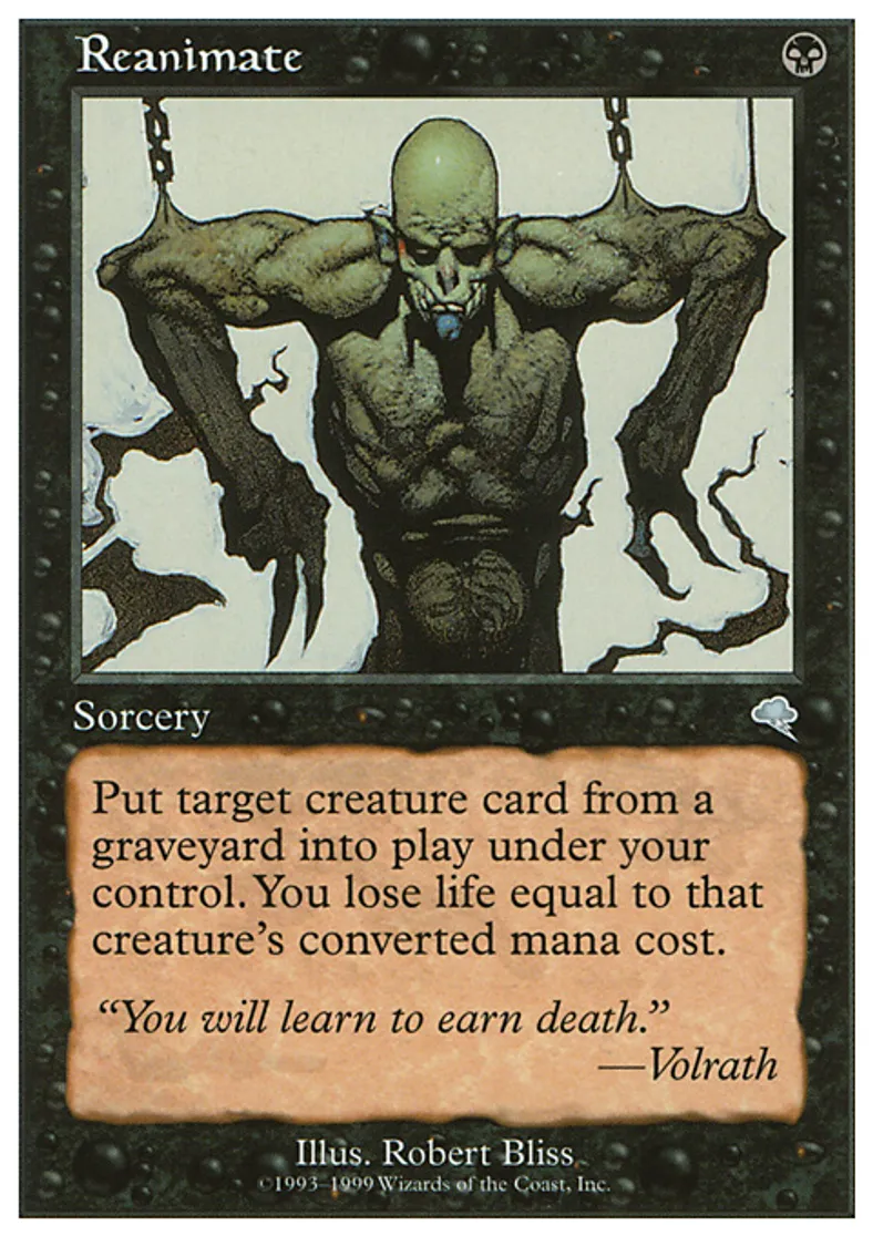 | Oracle Text | Put target creature card from a graveyard onto the battlefield under your control. You lose life equal to its converted mana cost. | ||