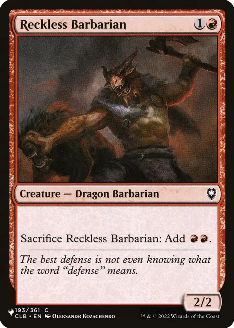 Magic: the Gathering (mtg) Common creature — dragon barbarian Reckless Barbarian from The List Reprints (PLIST) last updated 2026-02-21 15:30:32