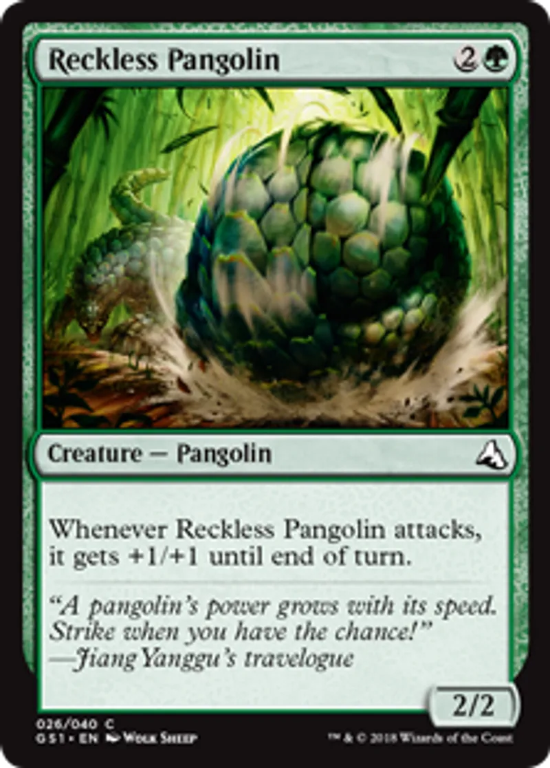 Reckless Pangolin is a Common in the set Global Series Jiang Yanggu & Mu Yanling.