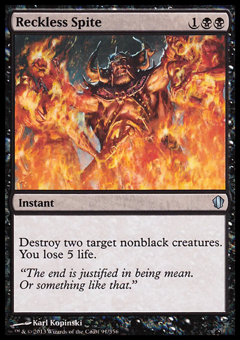 Reckless Spite is a Uncommon in the set Commander 2013 Edition.