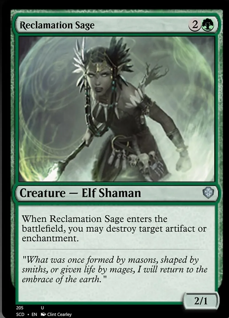Magic: the Gathering (mtg) uncommon Creature — Elf Shaman Reclamation Sage from Starter Commander Decks (scd) last updated 2026-02-21 16:19:33