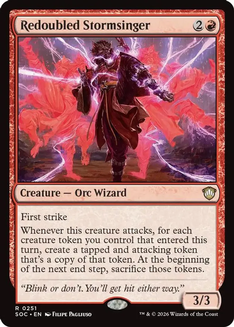 Magic: the Gathering (mtg) Rare creature — orc wizard Redoubled Stormsinger from Commander: Secrets of Strixhaven (SOC) last updated 2026-04-20 15:37:05