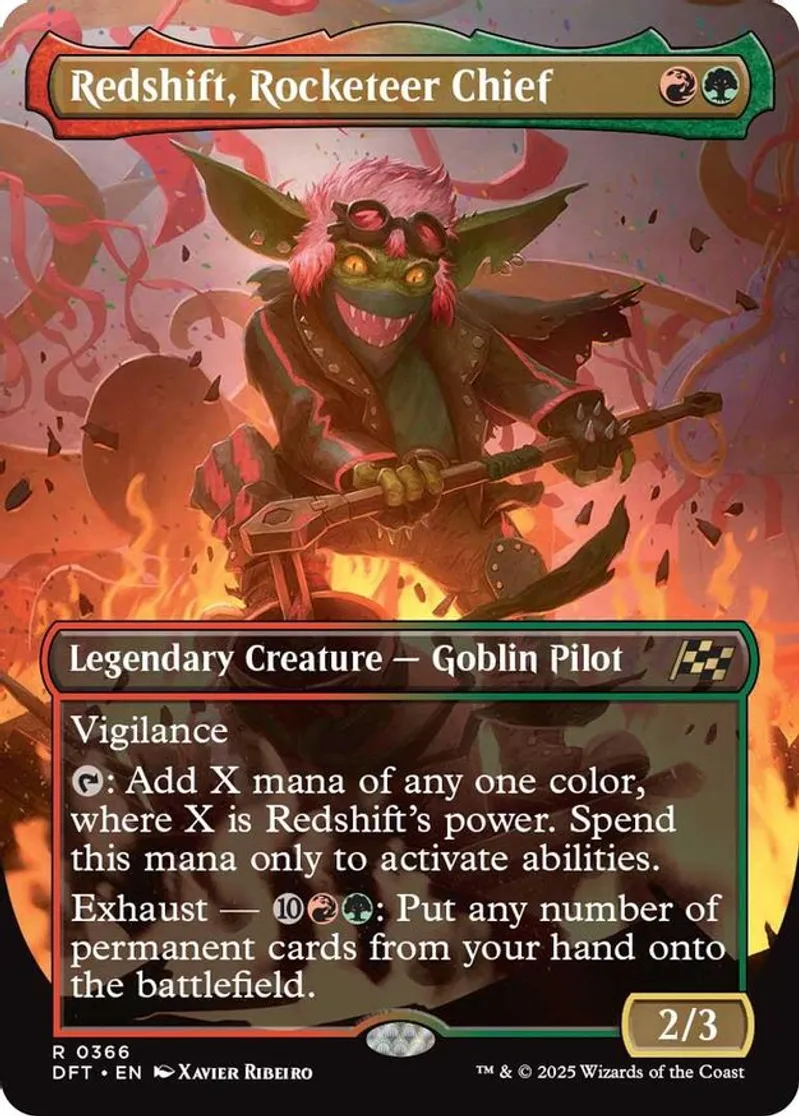 Magic: the Gathering (mtg) Rare legendary creature — goblin pilot Redshift, Rocketeer Chief from Aetherdrift (DFT) last updated 2026-02-21 15:36:07