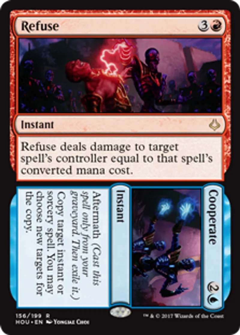 Magic: the Gathering (mtg) Rare Instant // Instant Refuse // Cooperate from Hour of Devastation (HOU) last updated 2026-02-24 16:04:36