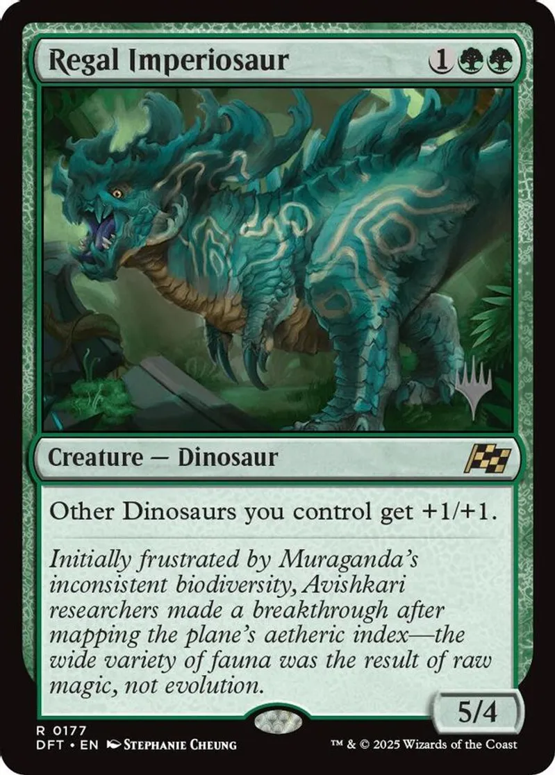 Magic: the Gathering (mtg) Rare creature — dinosaur Regal Imperiosaur from Promo Pack: Aetherdrift (PPDFT) last updated 2025-12-13 15:37:32