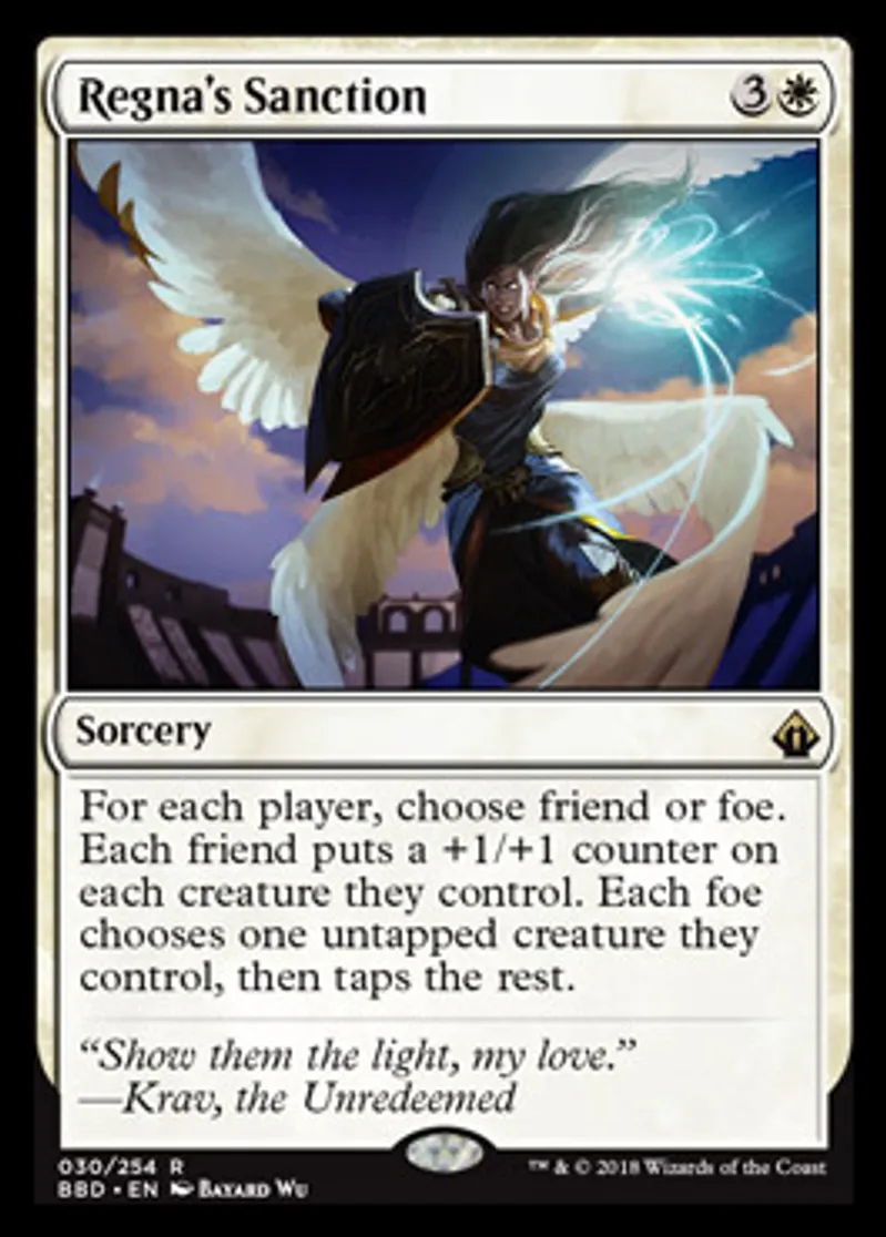 Magic: the Gathering (mtg) Rare Sorcery Regna's Sanction from Battlebond (BBD) last updated 2026-02-21 16:52:32