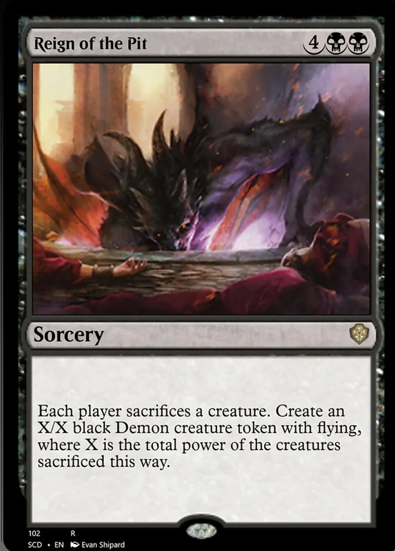 Magic: the Gathering (mtg) rare Sorcery Reign of the Pit from Starter Commander Decks (scd) last updated 2026-02-21 16:19:02