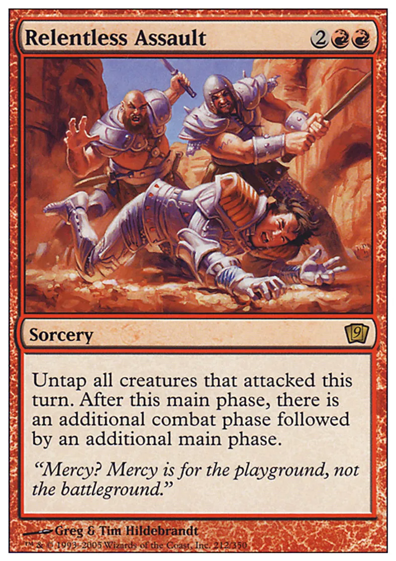 Magic: the Gathering (mtg) Rare Sorcery Relentless Assault from Ninth Edition (9ED) last updated 2026-02-07 17:42:07
