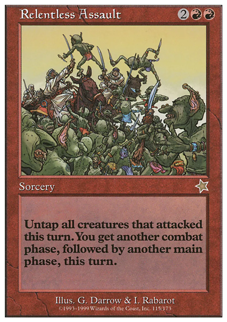 Magic: the Gathering (mtg) Rare Sorcery Relentless Assault from Starter 1999 (S99) last updated 2026-02-07 15:06:02
