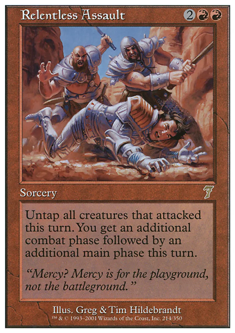 Magic: the Gathering (mtg) Rare Sorcery Relentless Assault from Seventh Edition (7ED) last updated 2026-02-07 15:06:02