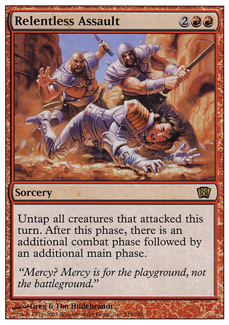 Magic: the Gathering (mtg) Rare Sorcery Relentless Assault from Eighth Edition (8ED) last updated 2026-02-07 15:06:33