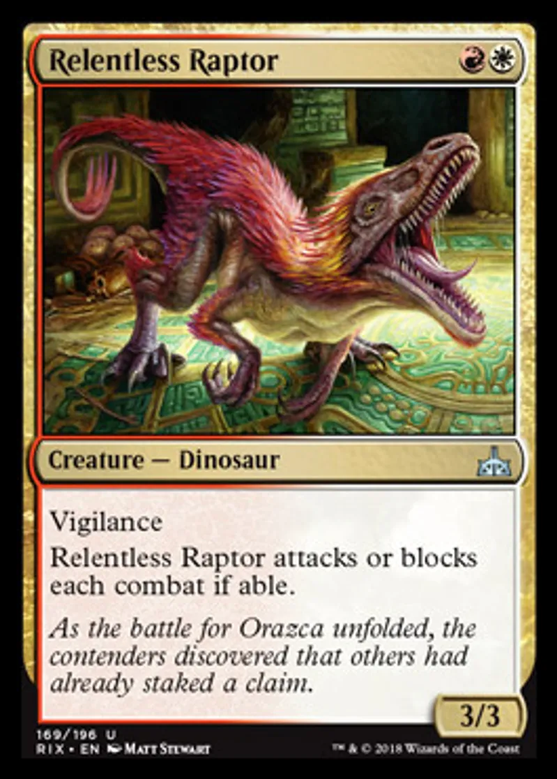 Magic: the Gathering (mtg) Uncommon Creature - Dinosaur Relentless Raptor from Rivals of Ixalan (RIX) last updated 2026-02-21 16:50:02