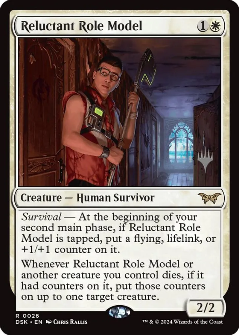 Magic: the Gathering (mtg) Rare creature — human survivor Reluctant Role Model from Promo Pack: Duskmourn: House of Horror (PPDSK) last updated 2026-02-24 15:23:06