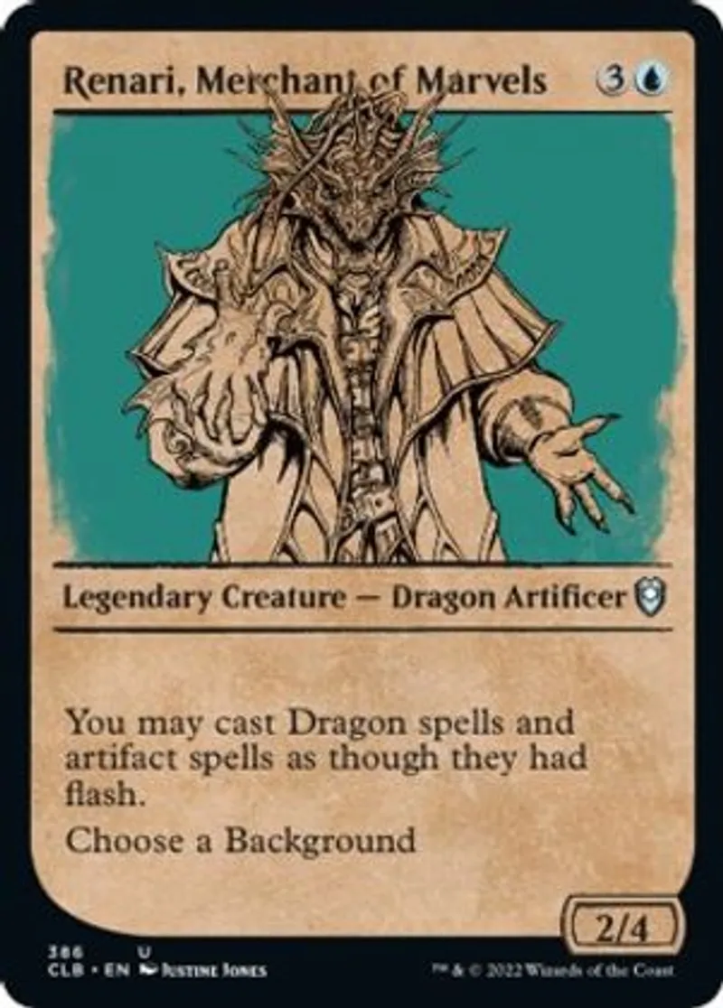 Renari, Merchant of Marvels (Showcase) is a Uncommon in the set Commander Legends: Battle for Baldur's Gate.