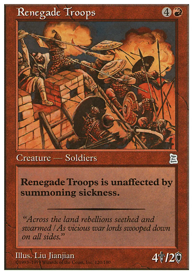 Magic: the Gathering (mtg) Uncommon Creature - Human Soldier Renegade Troops from Portal Three Kingdoms (PTK) last updated 2026-02-24 15:07:03