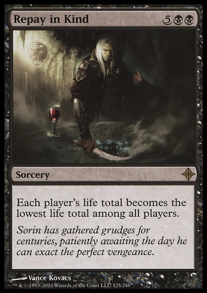 Magic: the Gathering (mtg) Rare Sorcery Repay in Kind from Rise of the Eldrazi (ROE) last updated 2026-02-24 15:56:02