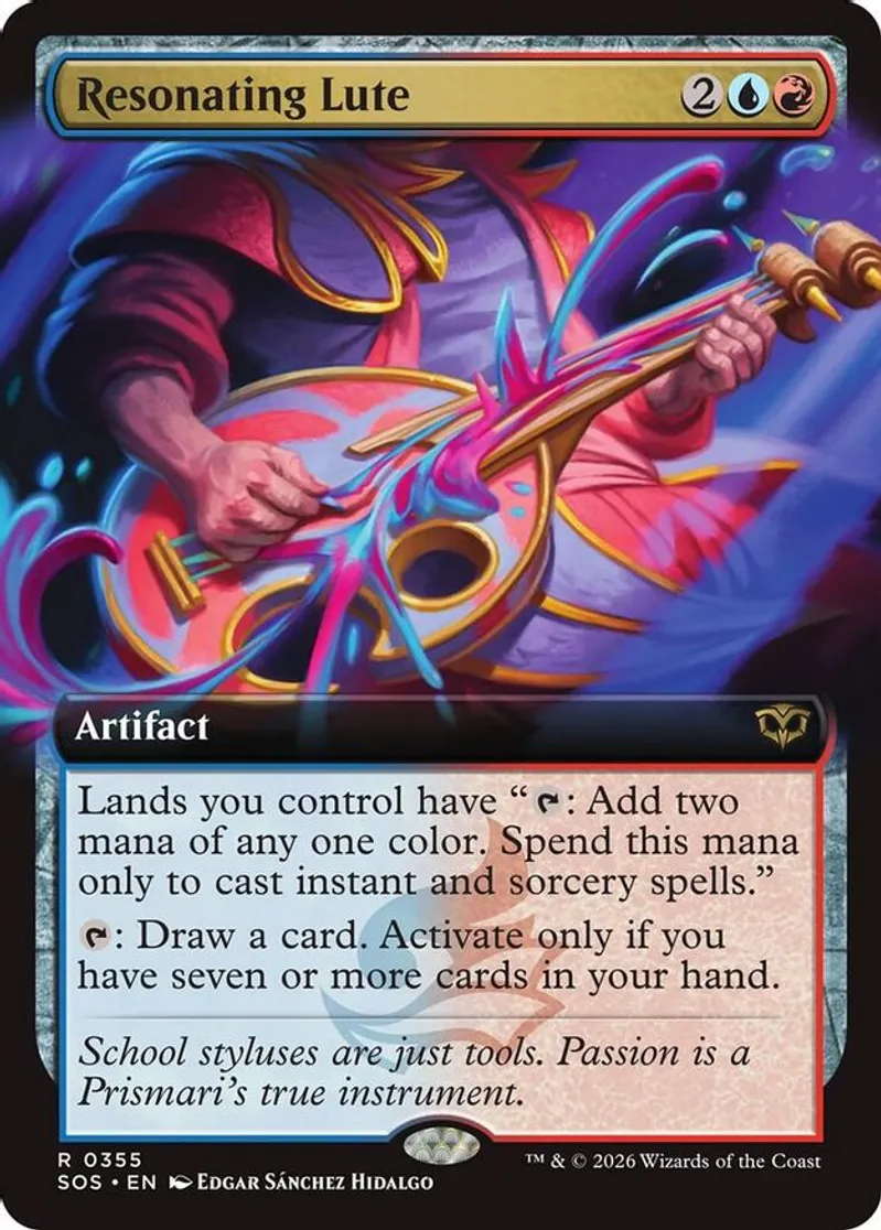 Magic: the Gathering (mtg) Rare artifact Resonating Lute from Secrets of Strixhaven (SOS) last updated 2026-04-16 23:12:36