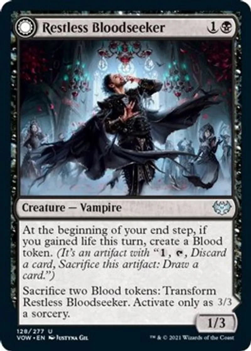 Magic: the Gathering (mtg) Uncommon Creature — Vampire // Creature — Vampire Restless Bloodseeker from Innistrad: Crimson Vow (vow) last updated 2026-02-21 16:43:36