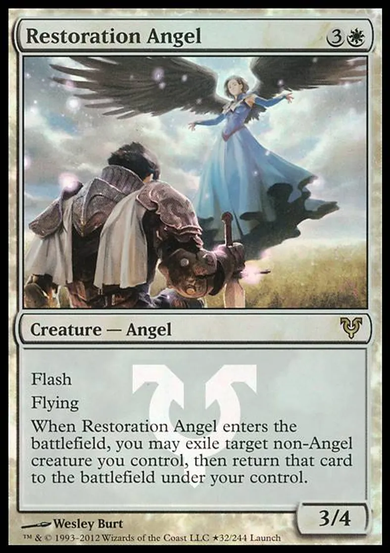When Restoration Angel enters the battlefield, you may exile target non-Angel creature you control, then return that card to the battlefield under your control. | ||